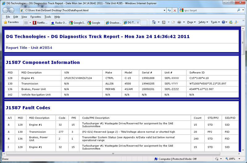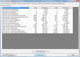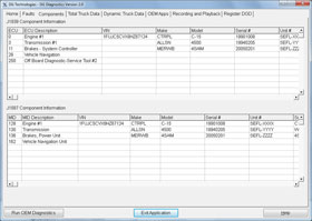 - Display J1587 and J1939 ECM component information such as VIN, Make, Model, Serial, and Unit Numbers.